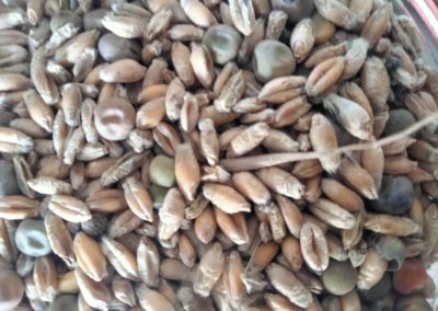 Au menu de la récolte de cet été : foin, triticale/pois, orge, féverole, froment et épeautre. Cette alimentation leur sera servie dès leur retour à la ferme, vers le milieu de l’automne.
